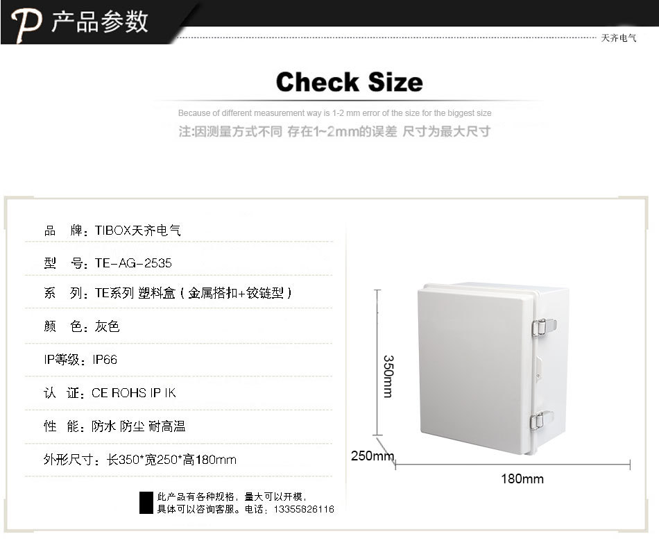 » TE-AT-2535塑料盒(金属搭扣+铰链型)